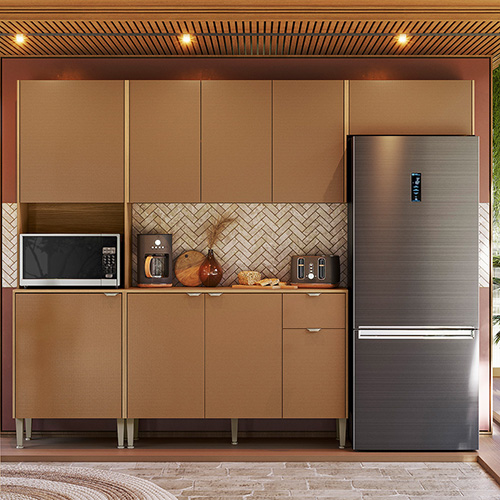 Com um estilo cheio de modernidade e totalmente diferente de tudo o que você já viu, ela é perfeita para pessoas que buscam uma cozinha atual e funcional, sem abrir mão do design. Desenvolvida utilizando módulos com muito espaço para você guardar tudo o que precisa, pensados para a utilização no dia a dia.