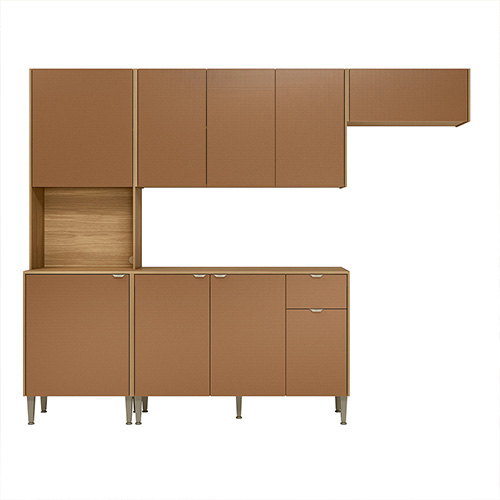 A Cozinha Nala é produzida com madeira reconstituída provinda de reservas florestais para este fim. Possui oito portas sendo uma com vidro reflecta que destaca a peça em seu ambiente, Os puxadores são ergonômicos em plástico resistente (poliestireno) com acabamento metalizado, mais beleza para sua cozinha.